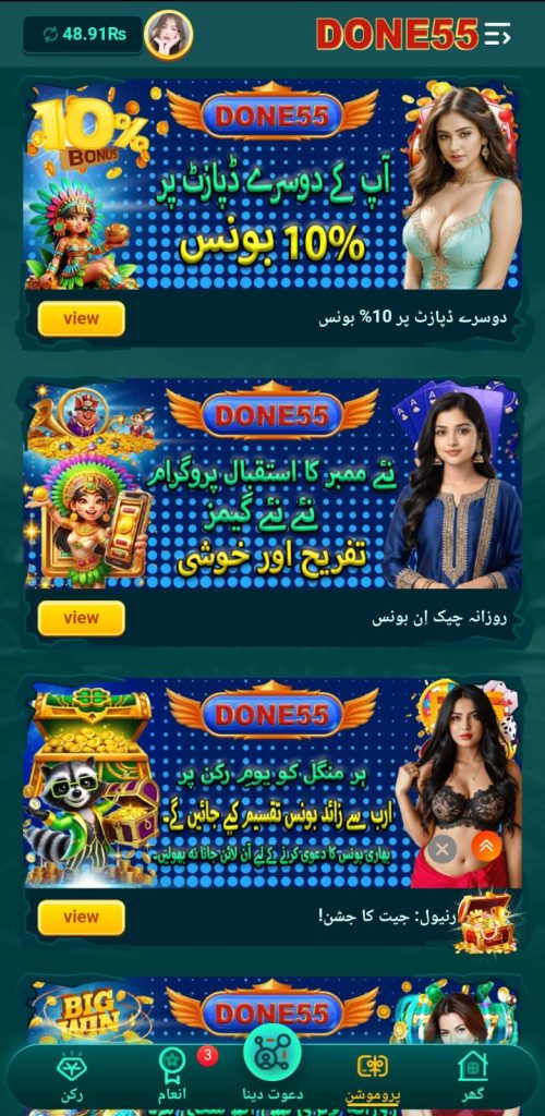 The Done55 platform is positioning itself as a multi-featured real earning app in Pakistan’s growing gaming market. With crash games, slots, promotions, referral income, and local payment options, the done 55 game offers more diversity than basic earning apps.